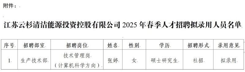 根据江苏交控2025年春季人才招聘工作相关要求,经过网上报名、资格审查、面试评审、体检等程序,现将2025年春季人才招聘拟录用人员名单予以公示,名单详见附件。