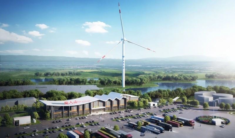 2024年11月,仙人山服务区分散式风电项目获得政府主管部门的核准批复,该项目是“风光储充换”一体化高速公路零碳示范服务区的核心组成部分。项目在宁沪高速仙人山服务区内构建容量为8530千伏安的市电电源,建设2.8兆瓦分布式光伏电站、一台5.6兆瓦风力发电机组,增设服务区充电桩44台、两座蔚来换电站、以及重卡换电站,所有的新能源发电、用电负荷全部接入服务区10千伏开关站,项目采用交流组网方案,以智慧能源管理技术实现微电网智能管理,以此精准匹配风电、光伏绿电电源与服务区所有用电负荷,实现风电、光伏、市电、储能一体化智能管理,形成风能、太阳能为主,市电为辅的“风光储充换”一体化智能微电网。